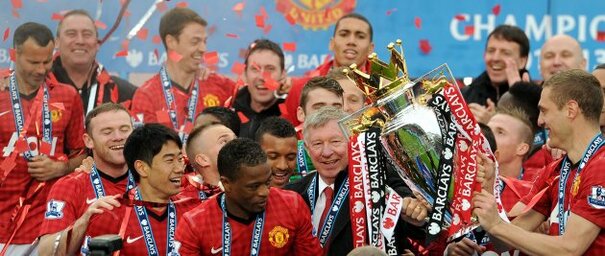 • Alex Ferguson lifts the premier league trophy