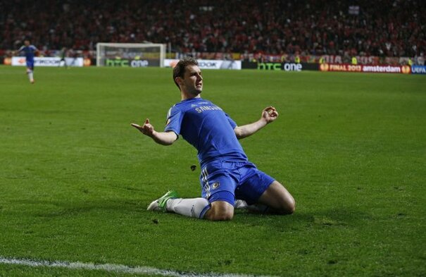 • Chelsea's Branislav Ivanovic celebrates his winner in Europa League final
