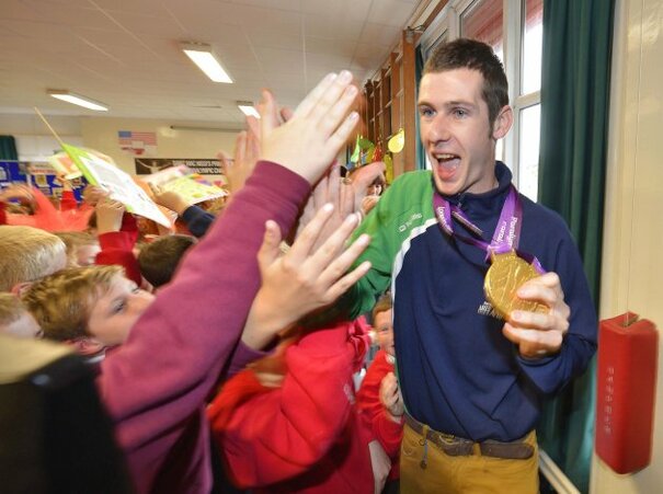 • Michael McKillop visits St MacNissis' school in Belfast