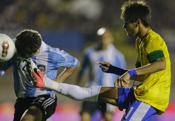 • Brazilian star Neymar catches Argentina's Rodrigo Brana
