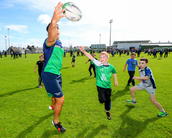 Ronan Loughney plays ball with young Connacht fans.
