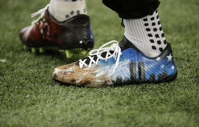 11. Atlanta Falcons wide receiver Julio Jones warms up wearing boots in remembrance of 9/11