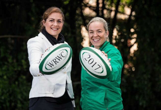 Fiona Coughlan and Niamh Briggs at the announcement of Ireland hosting the 2017 Women’s Rugby World Cup.
