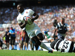 Which former England rugby player scored a 65-yard touchdown in a pre-season game for the Buffalo Bills?