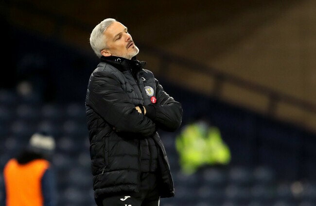 THERE WAS DISAPPOINTMENT for Jim Goodwin and St Mirren as they fell to a 1-0 defeat to Livingston in today’s Betfred Cup semi-final.