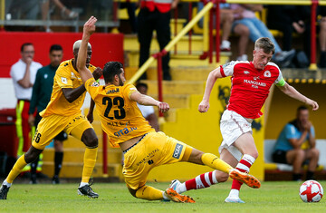 MARK DOYLE SALVAGED St Patrick’s Athletic’s European hopes with a crucial late goal, as the Saints fell to a narrow defeat at the hands of F91 Diddeleng in tonight’s first leg Europa Conference League qualifier.
