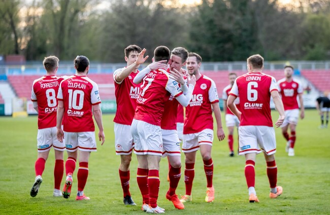 Derry set up to press the Saints high with a flexible three-at-the-back formation and had some success in disrupting the home side’s usual smooth passing game.