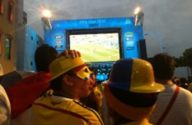 The sizeable clusters of Japanese could be explained by the fancied Asians playing their opening game in Recife before fatally drawing with Greece in nearby Natal, yet no one could offer an explanation for the huge numbers of Colombians, neither in the fan fest nor the nearby food court.