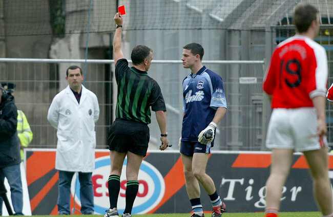 As happened in 2003, Kevin McLoughlin stood in front of a kickout. Cluxton had a nibble. A red card was produced.