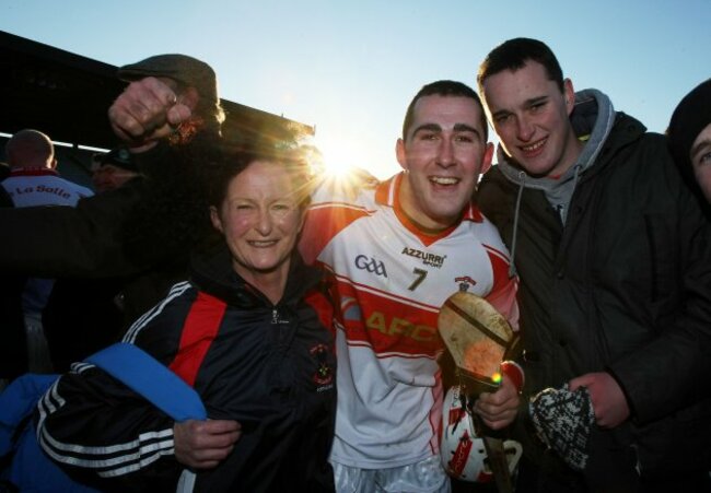 De La Salle’s Stephen Daniels celebrates with his mother Jackie after winning the 2010 Munster club final.