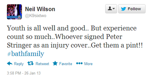 Legendary scrum half Peter Stringer pulled on the Bath shirt for the first time today in the LV Cup third round meeting with Exeter Chiefs.