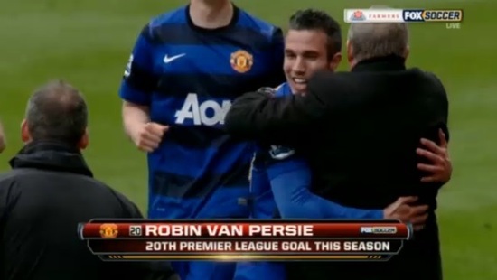 RVP gave Alex Ferguson an almighty hug after scoring…