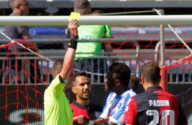 Muntari was booked late in his team’s 1-0 loss at Stadio Sant’Elia, apparently for dissent after confronting the match official.