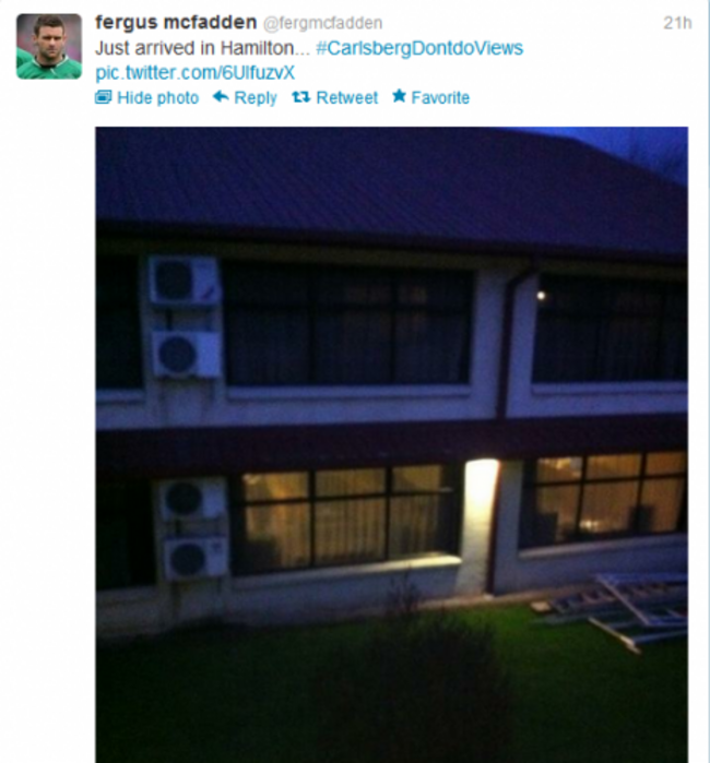 Winger Fergus McFadden was quick to tweet a view from his hotel room in a town that endures the nicknames of ‘The Tron’ and ‘Cowtown‘.