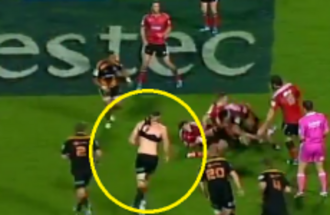 Colin Slade, sporting delightful sideburns this season, kicked all 18 points for Crusaders — still without the injured Richie McCaw — in the narrow win. The 18-17 Crusaders win was played at a frantic pace and neither side backed down from the physical battle. An example of this was Brodie Retallick opting to play on for several minutes despite having his jersey ripped off in a ruck:
