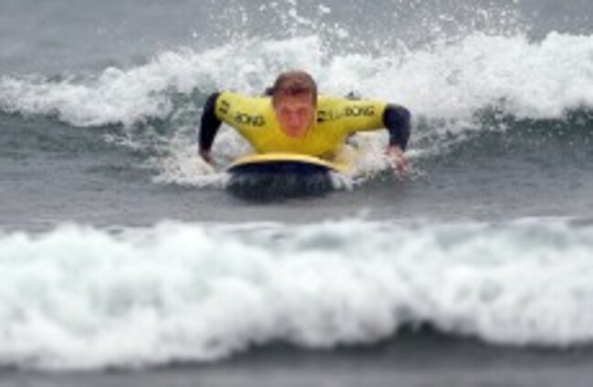 Ulster Rugby's Stuart Olding gets the hang of it at Bundoran. ©William Cherry/Presseye