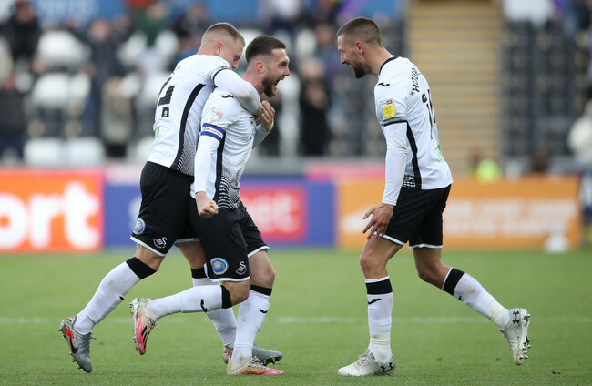 Swansea substitute Korey Smith should have settled matters when through one-on-one with Collins, but Steve Cooper’s side held on and will now have the opportunity to avenge last season’s play-off defeat to Brentford.