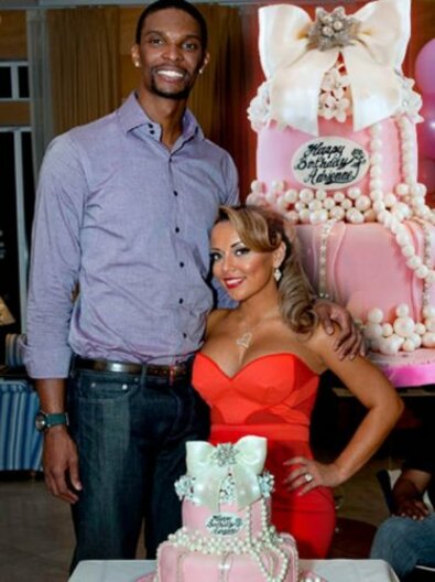 Chris Bosh, Chris Bosh's wife, their cake, and a blown-up picture of their cake
