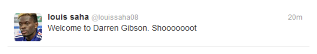 French striker Saha welcomed his move by tweeting the shout which was often heard ringing around Old Trafford when Gibson, who is known for having a powerful shot, came into possession in the opposition’s half.