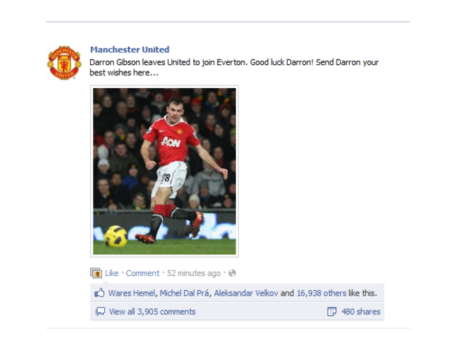Here’s Manchester United’s Facebook page: