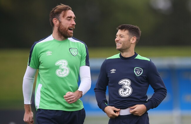 Ireland's Richard Keogh (left) and Wes Hoolahan during a recent training session. PA Wire/Press Association Images