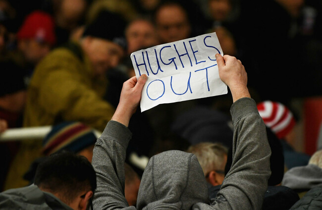 “Hughes out” signs were on show among sections of the home support at the bet365 Stadium as the final whistle blew and Stoke’s manager appears to be under more pressure than ever with fan discontent growing.
