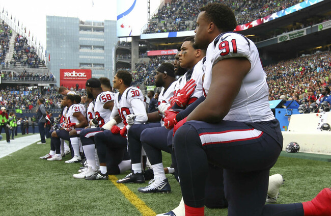 Several Seahawks players also sat during the anthem to show support for the Texans.