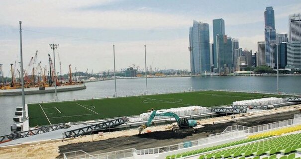 A floating soccer pitch in Singapore