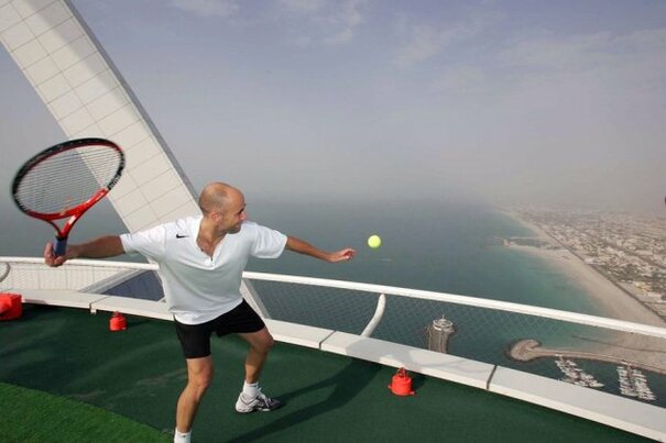 Andre Agassi and Roger Federer played tennis 1,000 feet up on a skyscraper in Dubai