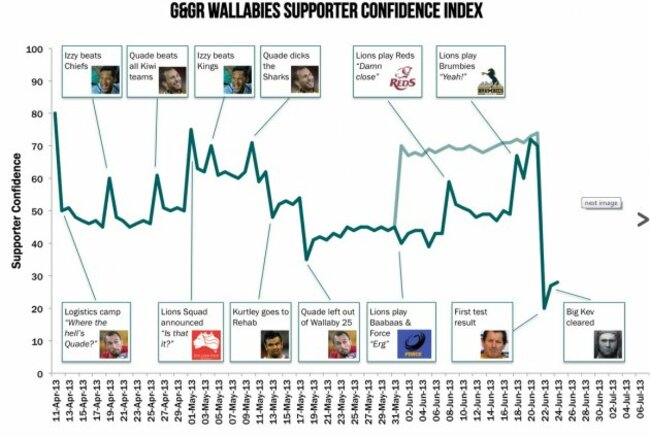 First – as you can see the predictive power of our Wallabies Supporter Confidence Index is impressive. Damn it.