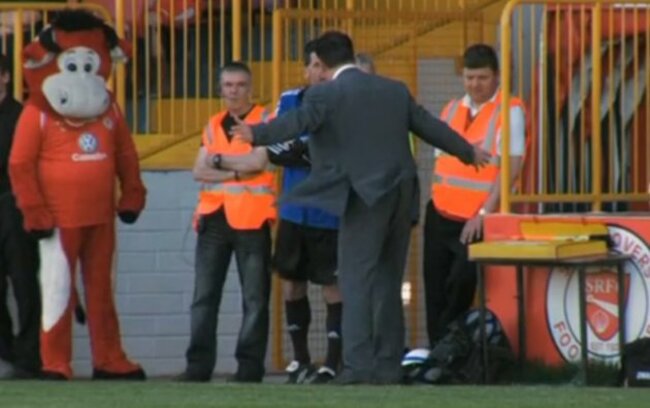 They record a famous cup win over the league leaders against the odds, however. Stangely, it cuts to footage of Mons fans celebrating at Oriel Park