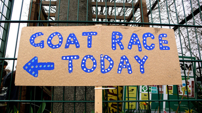 As an alternative to the protein shakes and shouting coxswains, The Goat Race is now in its 5th year in Spitalfields City Farm.