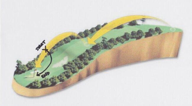 Watson started his shot parallel to the green, then curved it all the way back to the flag stick.