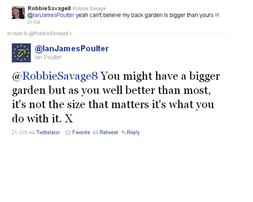 I was having great Twitter banter with Ian Poulter at the weekend — I criticised his playing gear and he sent me a picture of a Louis Vutton house and a Burberry car asking if they were mine.