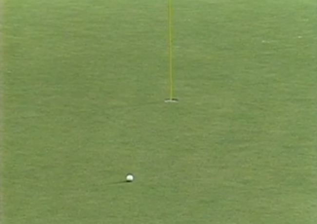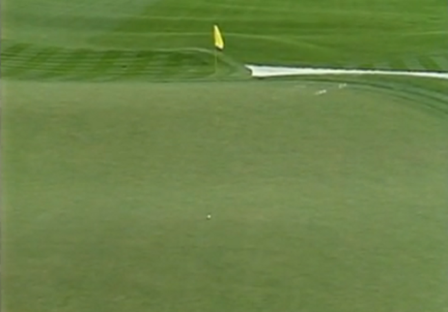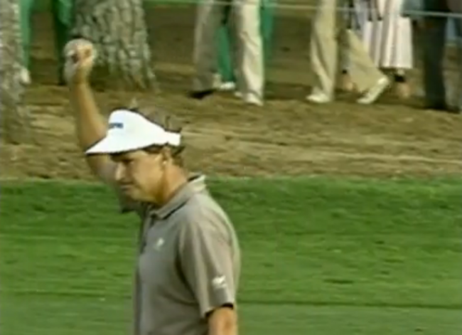 7. Hearing the cheers of the crowd, Lyle thought he had a gimme putt for birdie to win the Masters.