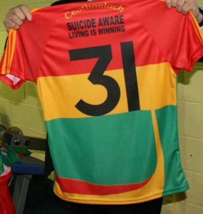 CARLOW’S SENIOR FOOTBALLERS and hurlers will wear shirts with the words “Suicide Aware: Living Is Winning” written across the back of them this year.