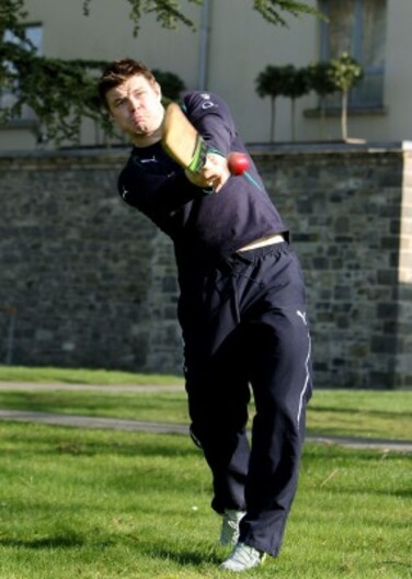 Ireland captain Brian O'Driscoll gets in the swing of things with a cricket bat at Carton House. Source: INPHO/Dan Sheridan