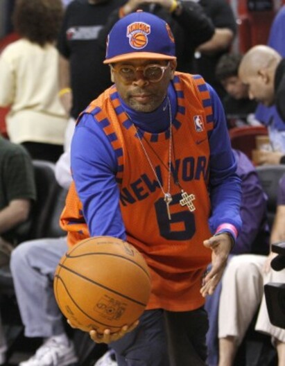 Spike Lee hands back the ball during the New York Knicks game with Miami Heat in South Beach last Sunday.Source: AP Photo/Alan Diaz