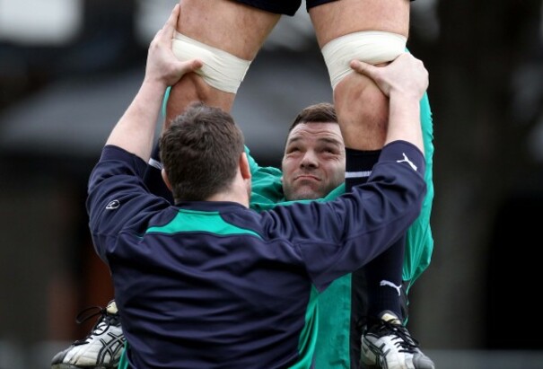 Get up: Mike Ross lifts in a lineout during Ireland squad training.Source: INPHO/Dan Sheridan