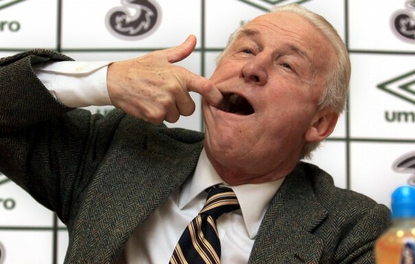 Giovanni Trapattoni gets his point across in his own way at the Radisson Hotel, Dublin Airport ahead of the Wales game.Source: INPHO/Donall Farmer