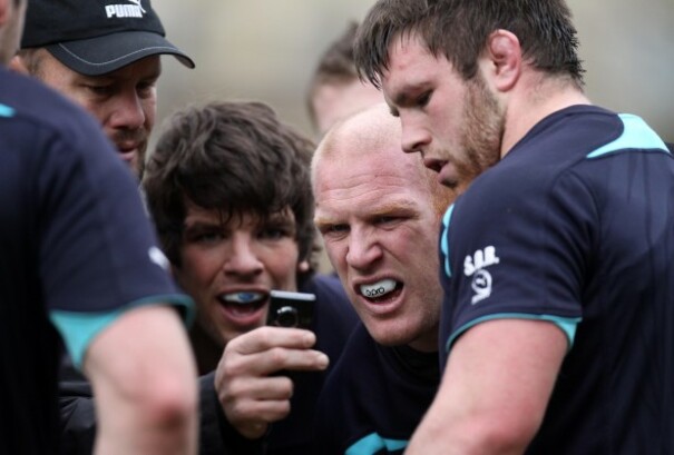 Paul O'Connell and his fellow forwards analyse a video during squad training this week.