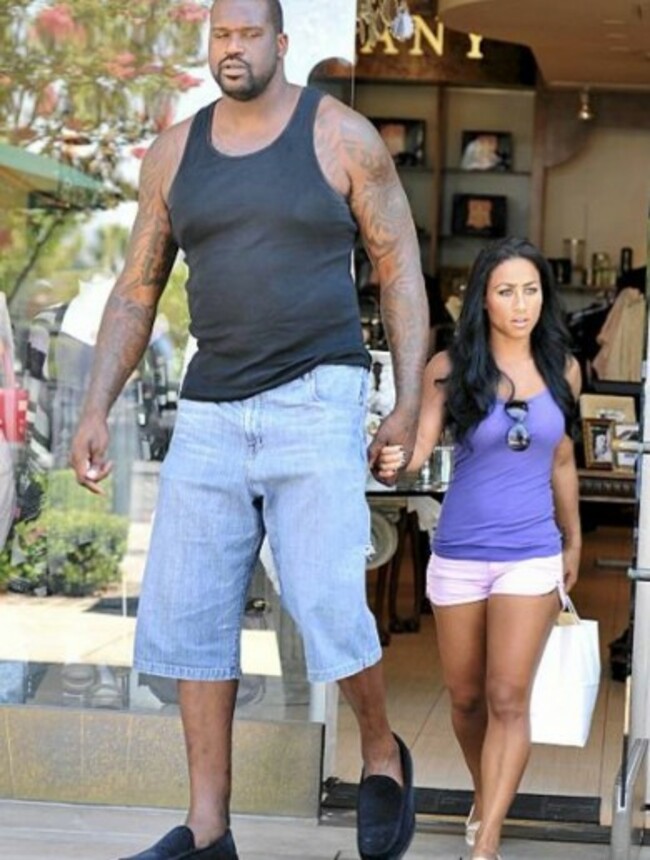 HERE’S A CRAZY-looking picture of Shaquille O’Neal walking with his girlfriend, Nikki “Hoopz” Alexander.