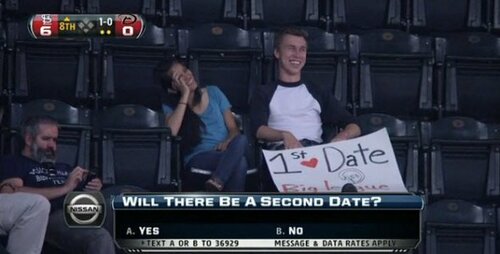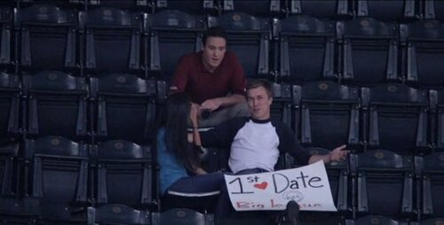 That’s when the TV crew spotted a couple holding a sign indicating that it was their first date.