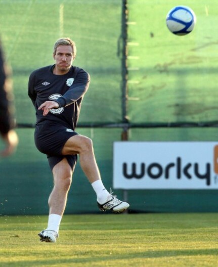 Ireland midfielder Liam Lawrence fell down the stairs and injured his ankle after tripping over his dog.
