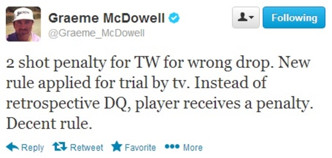 Woods, however, indicated he had opted to take the re-stroke “two yards away” from the original position.
