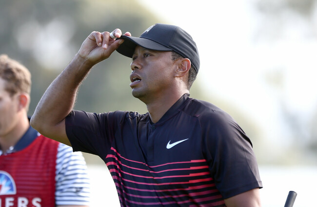 While Woods was relaxed enough to enjoy the Pacific Ocean view from the fourth hole, there were signs of frustration as well — including a swipe of his club after he found the rough off the tee at the par-three eighth.
