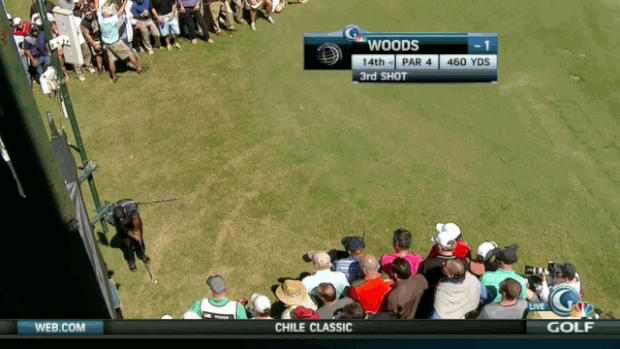 Tiger Woods flubs chip shot, doesn't make it halfway to the hole