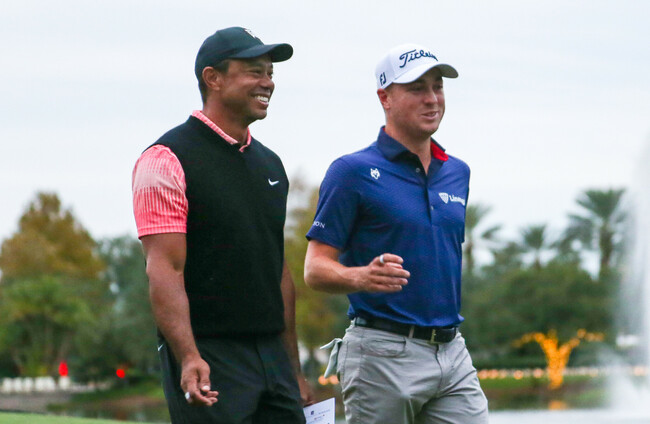 TIGER WOODS HAS received a mixed reaction after handing Justin Thomas a tampon after outdriving him during the Genesis Invitational.