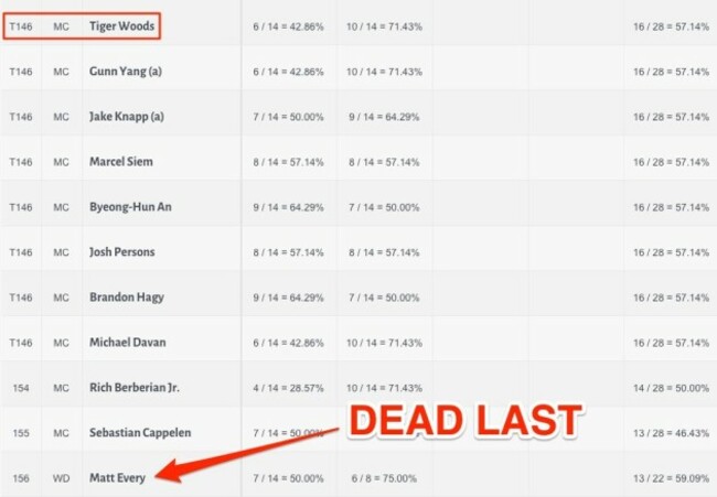 He was ranked 12th in fairways hit, but 135th in greens in regulation: