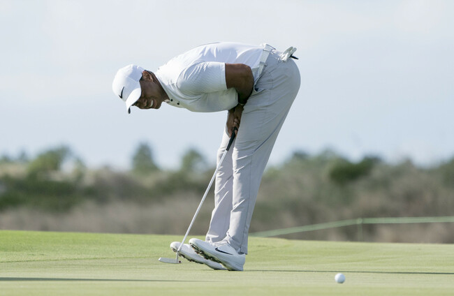 But Woods kept battling away and finally started getting some joy from his putting, to finish with two birdies on the 14th and 17th holes to claw back two shots.